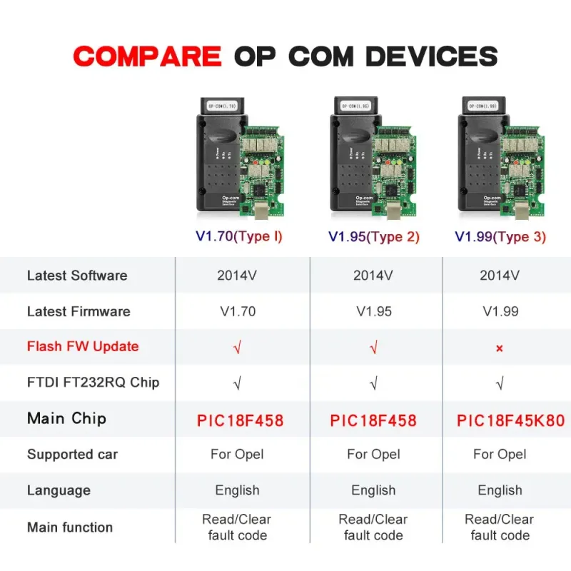New OPCOM V1.70/V1.95/V1.99 Firmware 2014V Software Function: