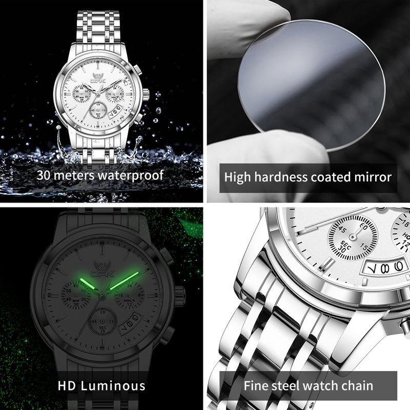 OPK 6051 Classical Watches For Man Fashion Chronograph Auto Date Waterproof Luminous Date Display Original Quartz Man Watch
