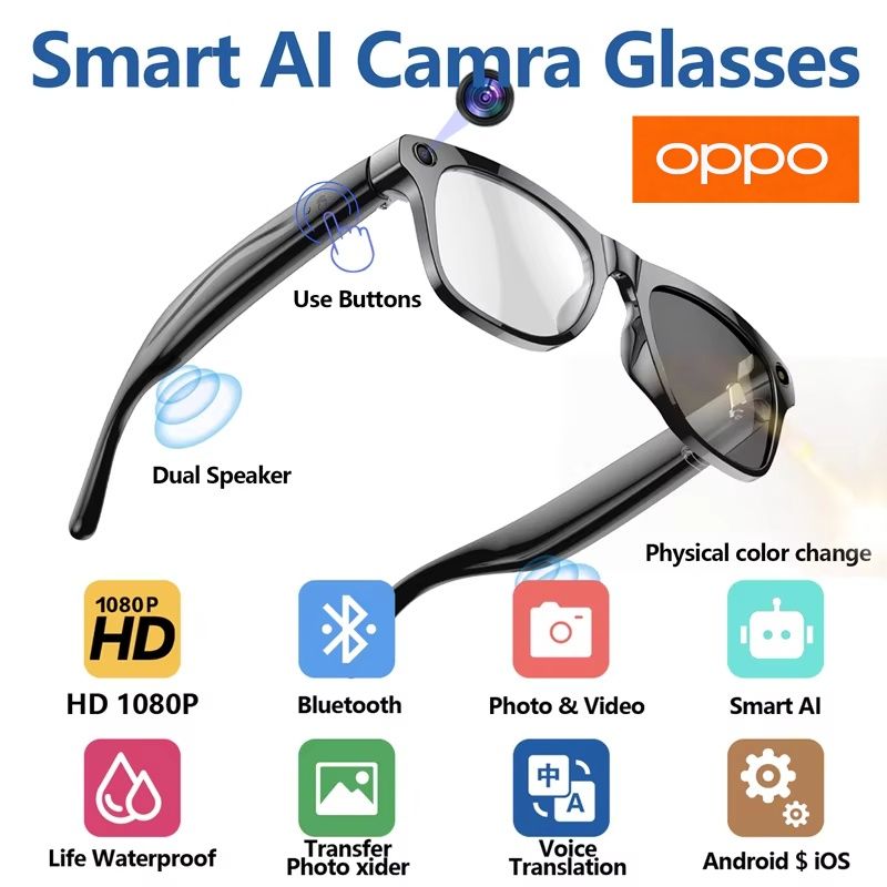 OPPO Smart AI Glasses Bluetooth 6K HD Call Photochromic Multifunction Chat GPT Voice Assistant Music Player Translate Sports