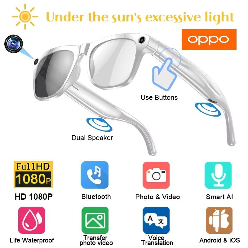 OPPO Smart AI Glasses Bluetooth 6K HD Call Photochromic Multifunction Chat GPT Voice Assistant Music Player Translate Sports