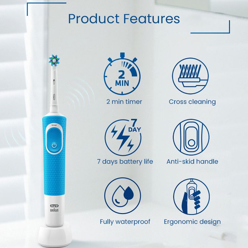 Oral B D100 Electric Toothbrush 2D Vitality Cleaning Teeth Brush Rechargeable Waterproof Electronic TeethBrush Inductive Charger