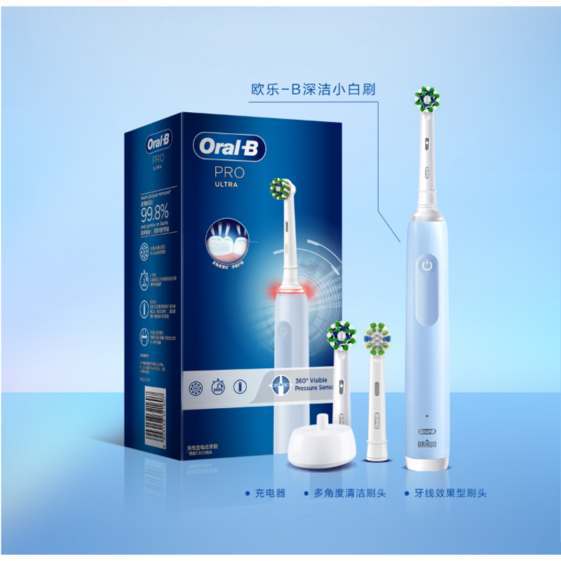 Oral B Pro Ultra Electric Toothbrush Pro 4 Pressure Sensor 48,800 Strokes/Min 2 Min Timer 30s Reminder 4 Modes 3 Brush Heads