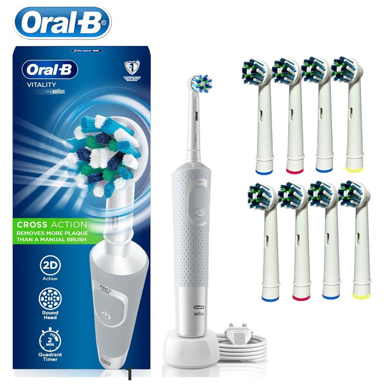 Includes rechargeable handle, charger and one Cross action brush head(Pink with 1 EB25brush head +EB50 brush head,Blue with 1EB50 brush head+EB60 brush head)