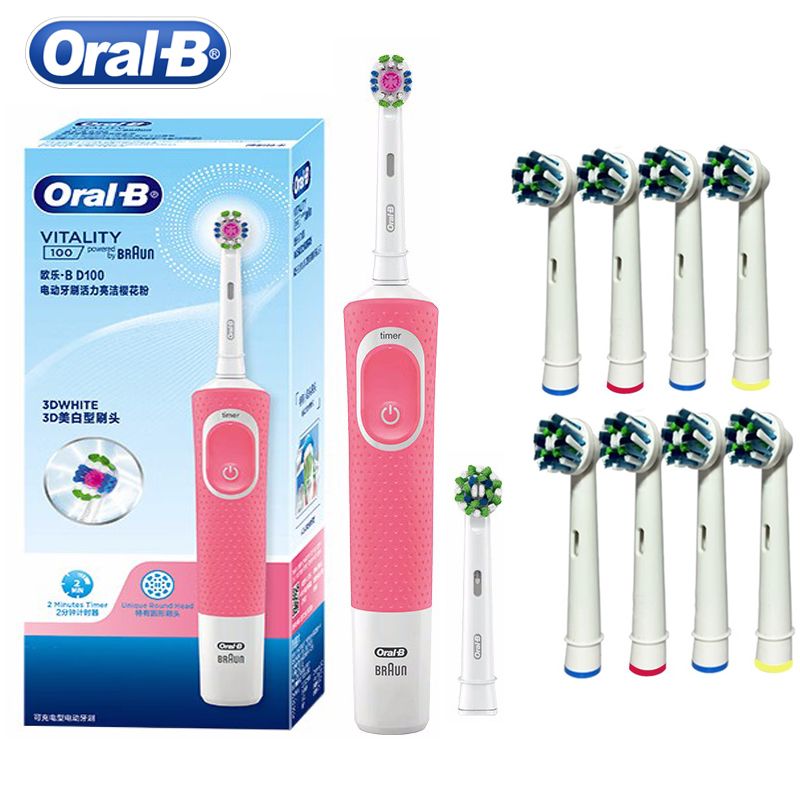 Includes rechargeable handle, charger and one Cross action brush head(Pink with 1 EB25brush head +EB50 brush head,Blue with 1EB50 brush head+EB60 brush head)