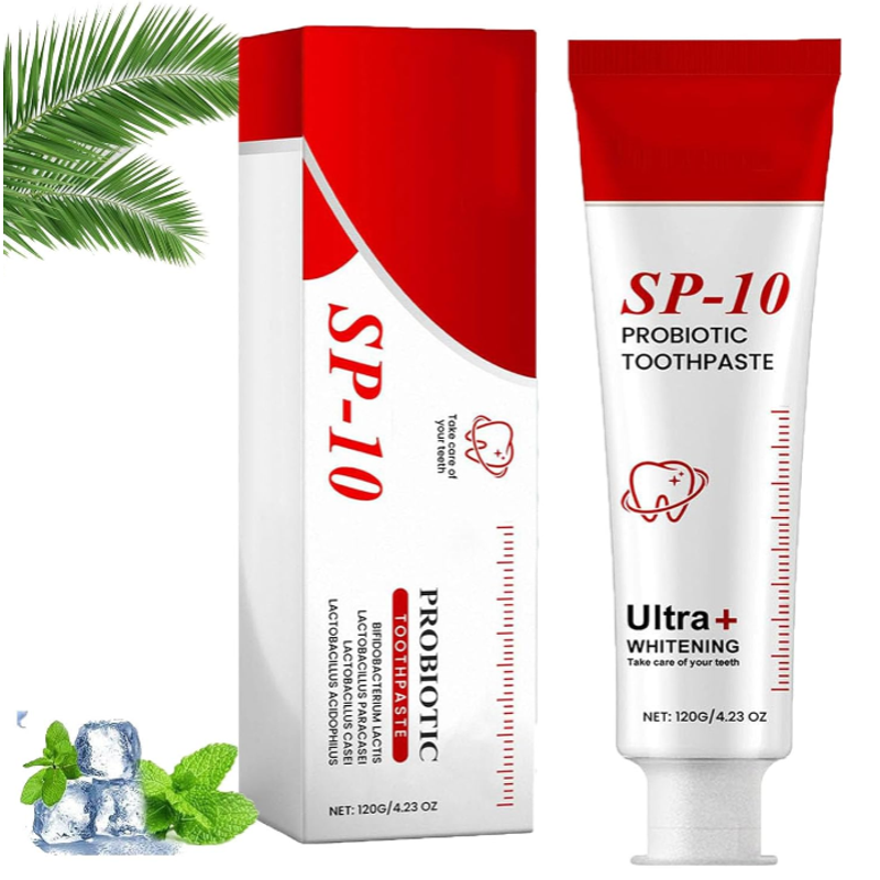 SP-10 Probiotic Toothpaste – Ultra+ Whitening formula enriched with probiotics for a brighter smile and healthier gums.