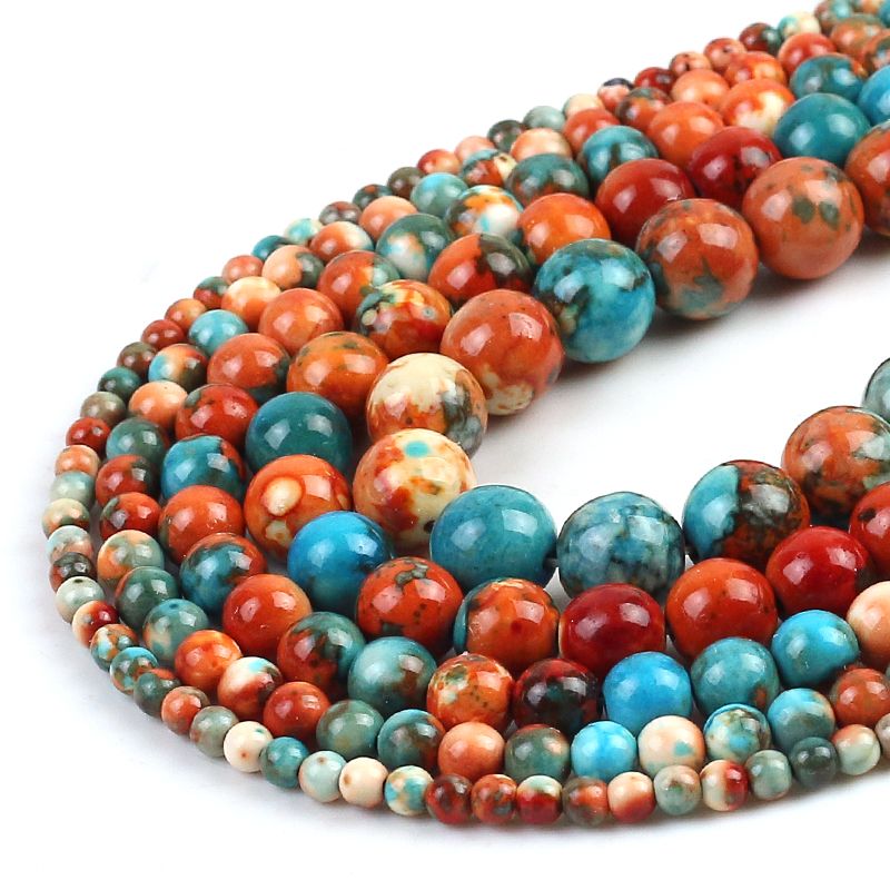 Orange Blue Colorful Rain Jaspers Round Beads Natural Loose Stone Beads For DIY Jewelry Making 4/6/8/10/12mm Bracelet 15''