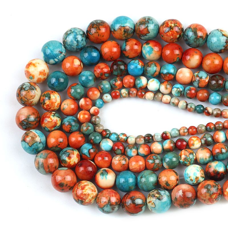 Orange Blue Colorful Rain Jaspers Round Beads Natural Loose Stone Beads For DIY Jewelry Making 4/6/8/10/12mm Bracelet 15''