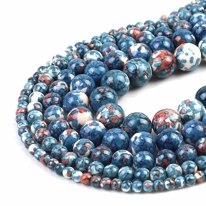 Orange Blue Colorful Rain Jaspers Round Beads Natural Loose Stone Beads For DIY Jewelry Making 4/6/8/10/12mm Bracelet 15''