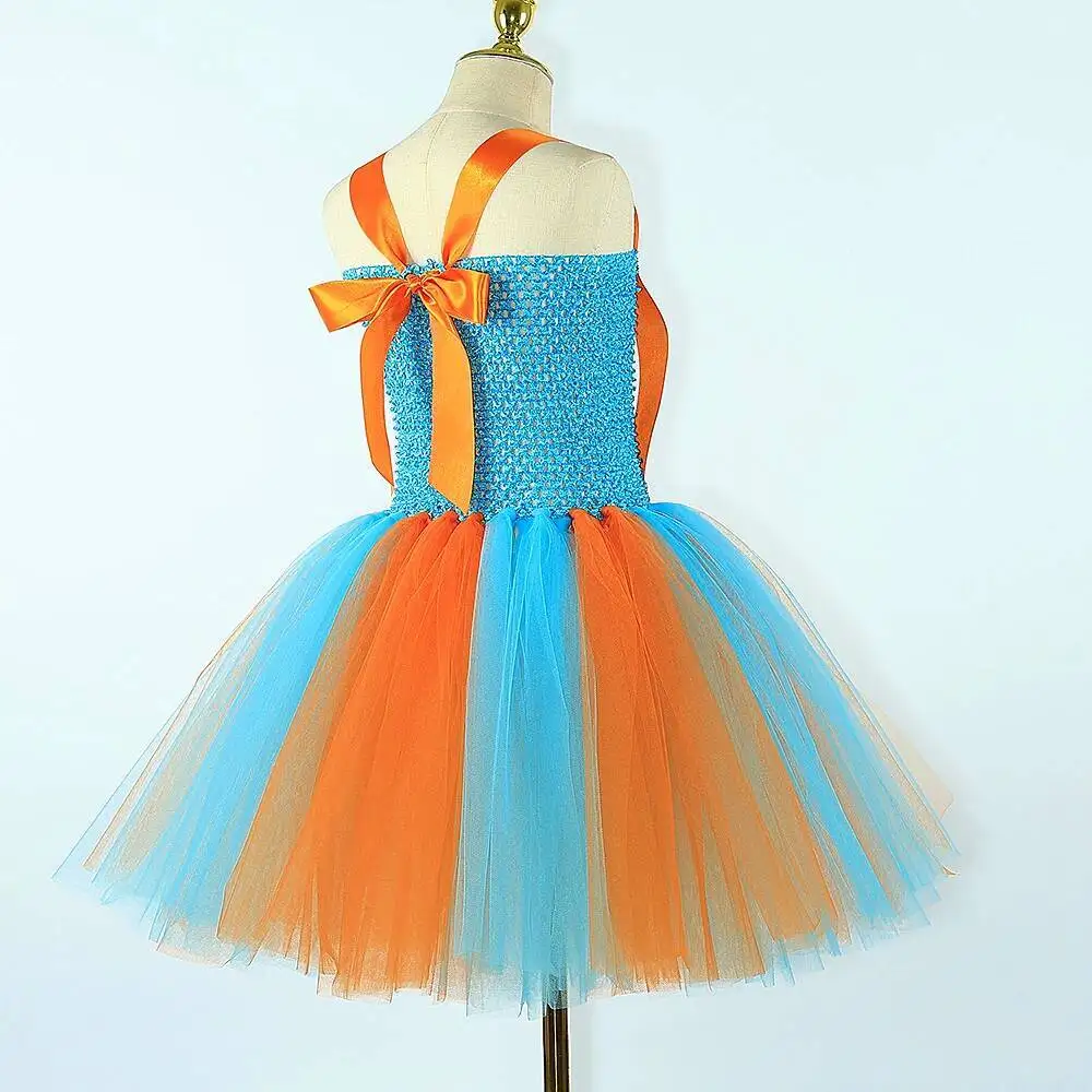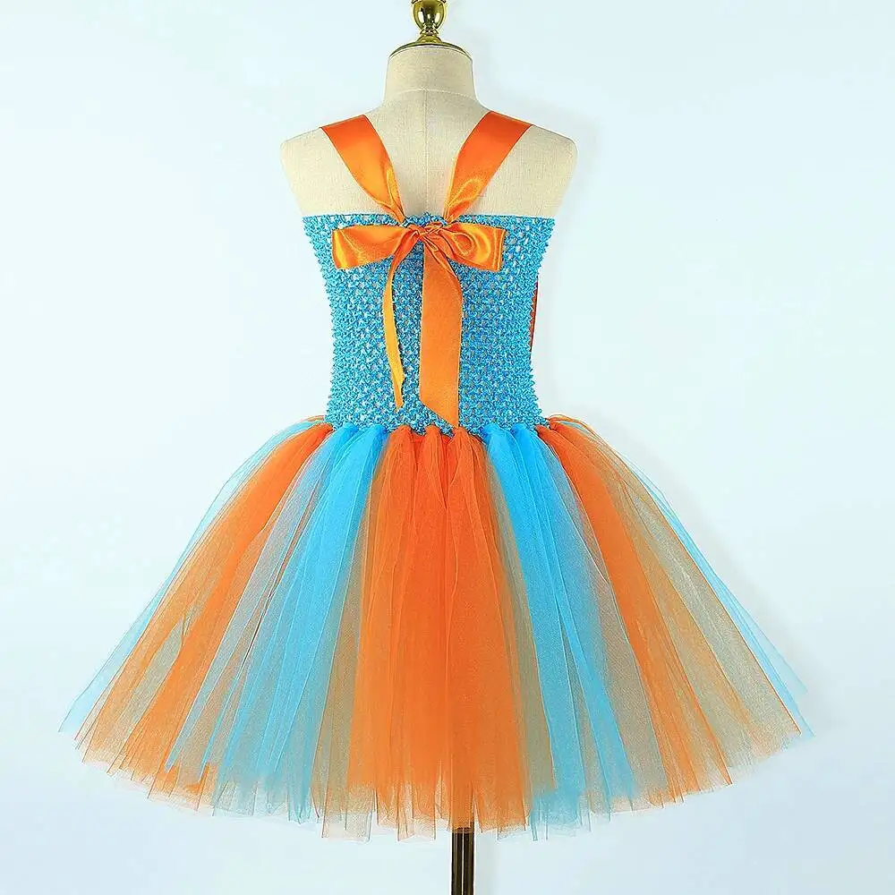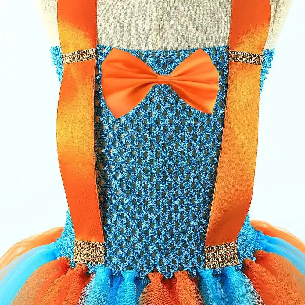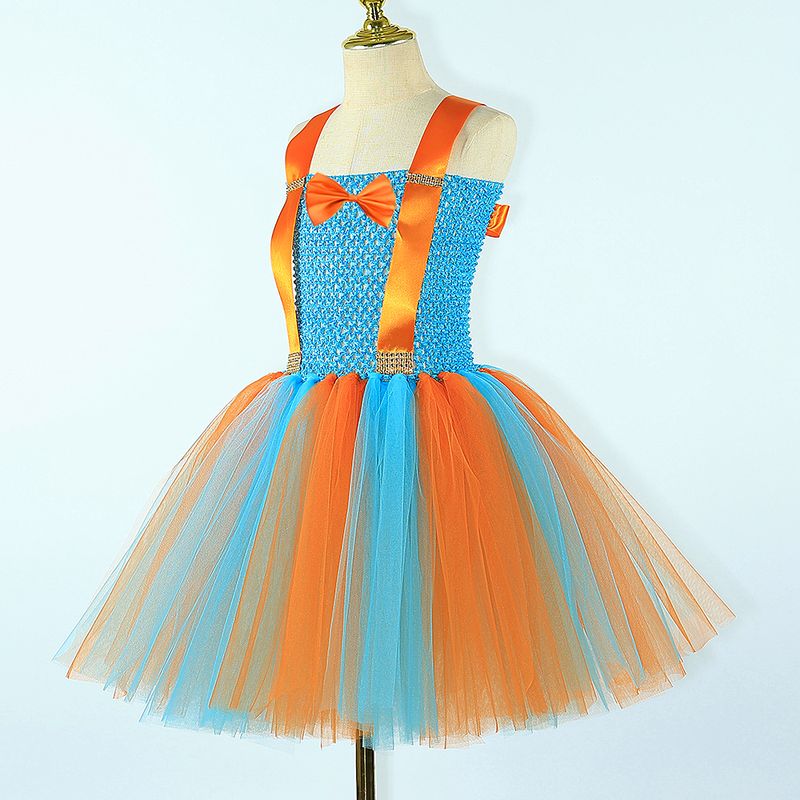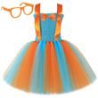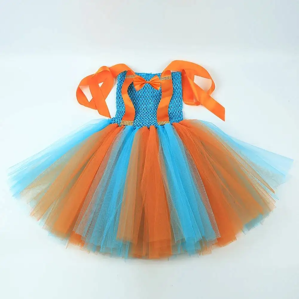 Orange Skyblue Blipp Costume for Baby Girls Cartoon English Teacher Tutu Dress Up Outfit for Kids Cosplay Clothes with Hat Glass