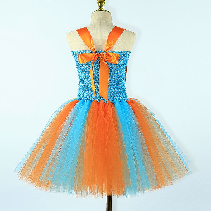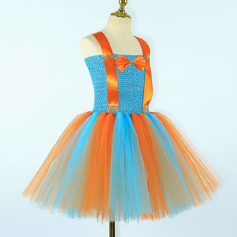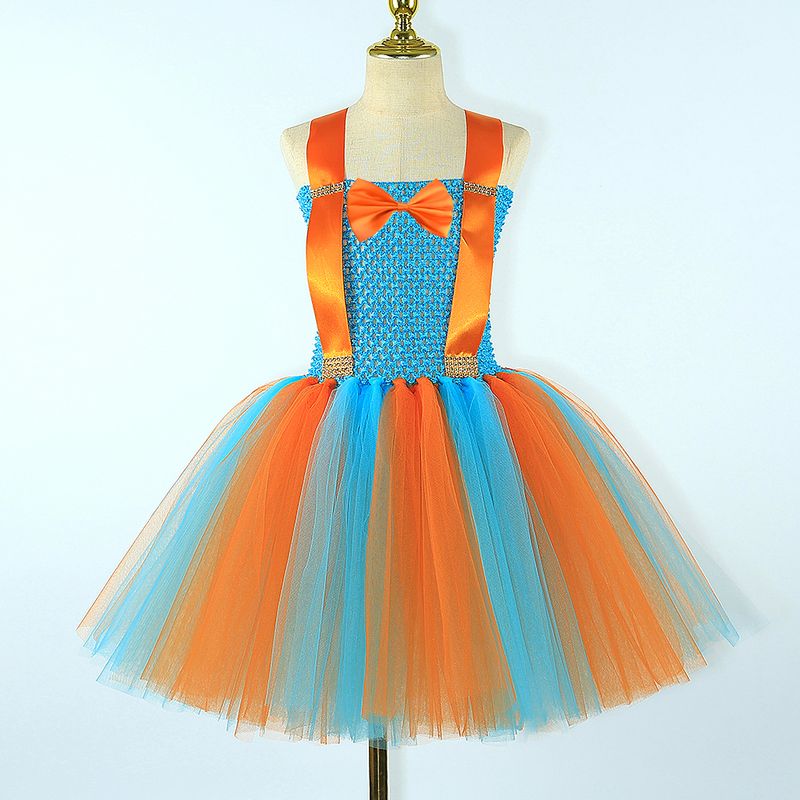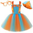 Orange Skyblue Blipp Costume for Baby Girls Cartoon English Teacher Tutu Dress Up Outfit for Kids Cosplay Clothes with Hat Glass