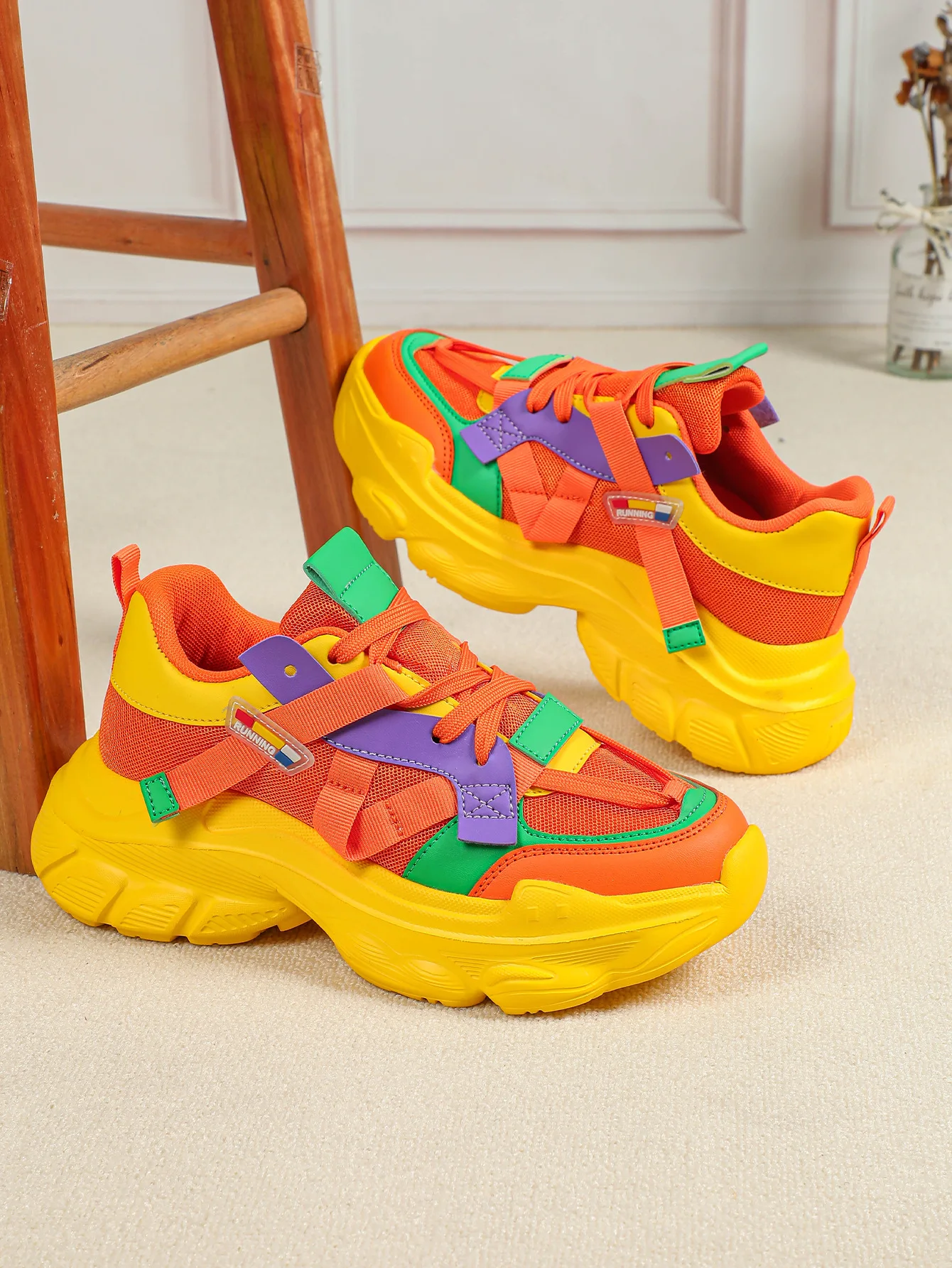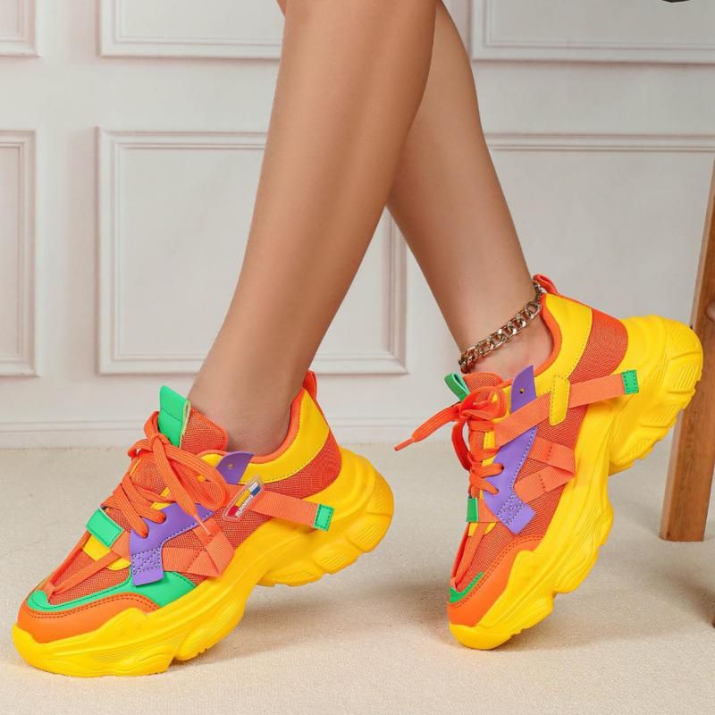 Orange Sneakers for Women Platform Sports Sneakers Women Chunky Platform Shoes Thick Sole Sports Shoes Comfortable Walking Shoes