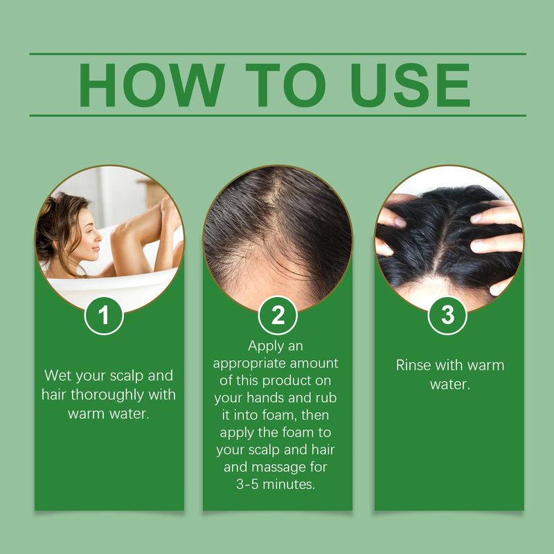 2.Apply an appropriate amount of this product on your hands and rub it into foam, then apply the foam to your scalp and hair and massage for 3-5 minutes.
