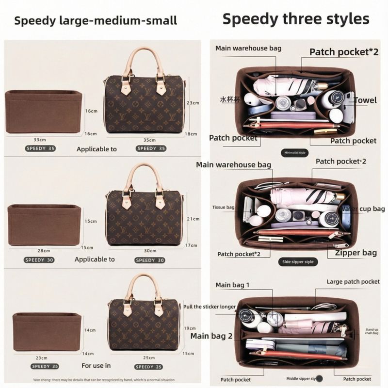 Organisateur de Sac Felt Purse Insert Organizer for Luxury Handbag Speedy 25 30 35 Makeup Bag Shaper Liner Travel Inner Pouch
