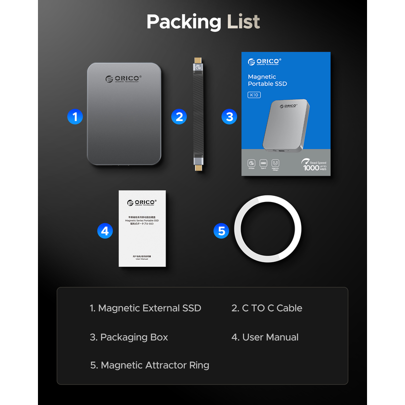 Equipped with a PD100W charging port, the ORICO K10 allows you to charge your smartphone, tablet, or laptop while using the SSD, making it a versatile tool for on-the-go professionals.
