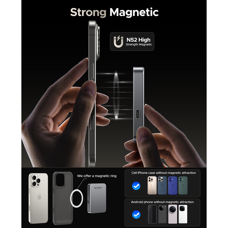 Securely attach your smartphone with the included magnetic ring, ensuring a firm hold without the risk of falling off. Perfect for hands-free use during photography or video recording.
