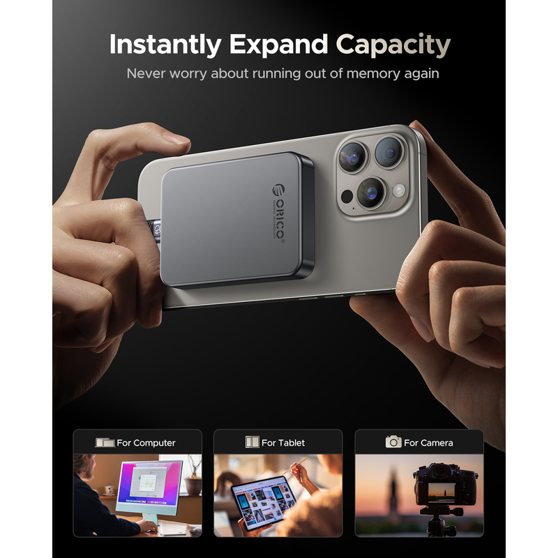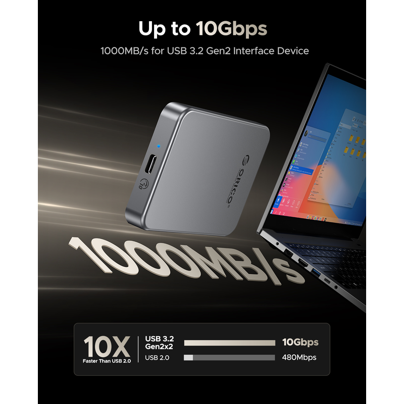 Equipped with a PD100W charging port, the ORICO K10 allows you to charge your smartphone, tablet, or laptop while using the SSD, making it a versatile tool for on-the-go professionals.