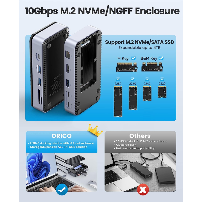 This ORICO docking station is designed for storage and expansion needs, storage and expansion 2-in-1. 10-in-1 expansion interface to meet your different expansion needs.