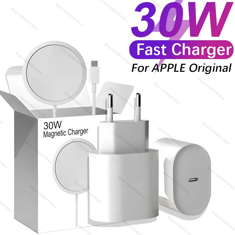 Original 30W Fast Charger For APPLE iPhone 16 15 14 13 12 11 Pro Max Plus Type C Magnetic Wireless Charger Phone Accessories