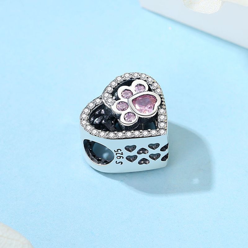 Original 925 Sterling Silver Charms Love Pets Dog Cat Paw Print Pendant Beads Fit Brand Bracelets Necklaces Women DIY Jewelry