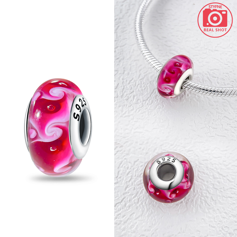 Original Certified Pink Glass Bead Blue Romantic Beads Fit Bracelet Charms 925 Sterling Silver Women Diy Jewelry Making