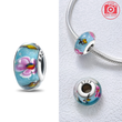 Original Certified Pink Glass Bead Blue Romantic Beads Fit Bracelet Charms 925 Sterling Silver Women Diy Jewelry Making