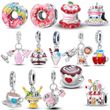 Original Charms 925 Silver Pink Colorful Doughnut Cake Ice Cream Coffee Cup Beads Fit Bracelet Women Jewelry Diy Delicate Gift