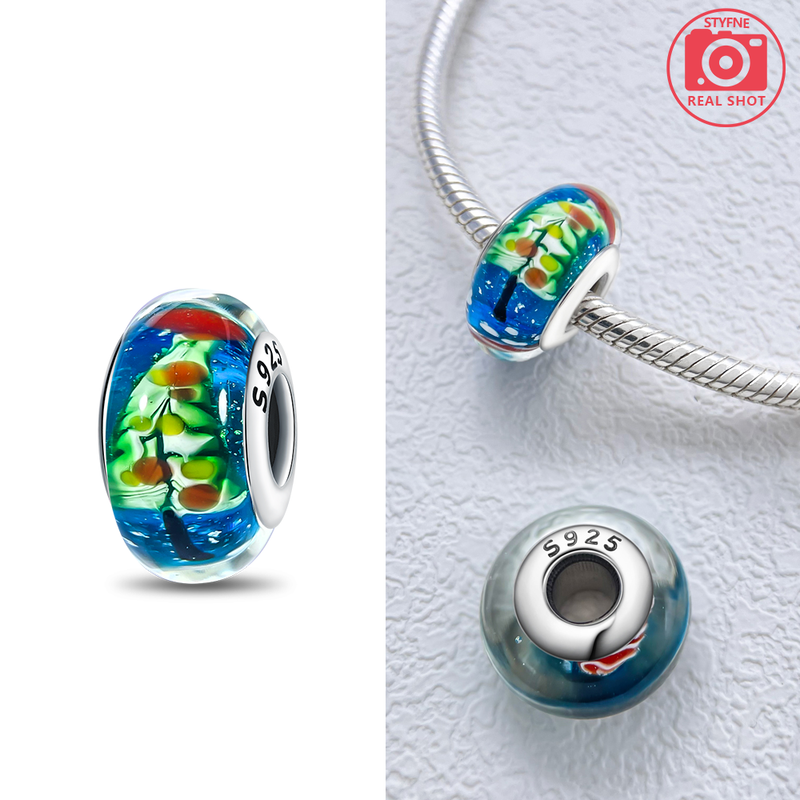 Original Charms Pink Murano Glass Blue Flower Butterfly Beads Fit 925 Silver Bracelet Women Diy Jewelry Gift Accessories