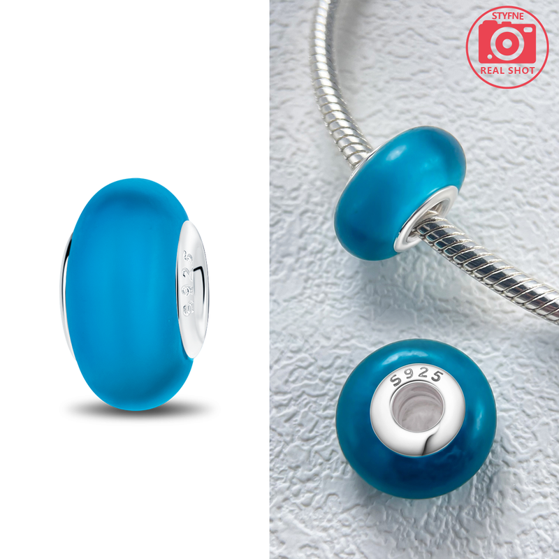 Original Charms Pink Murano Glass Blue Flower Butterfly Beads Fit 925 Silver Bracelet Women Diy Jewelry Gift Accessories