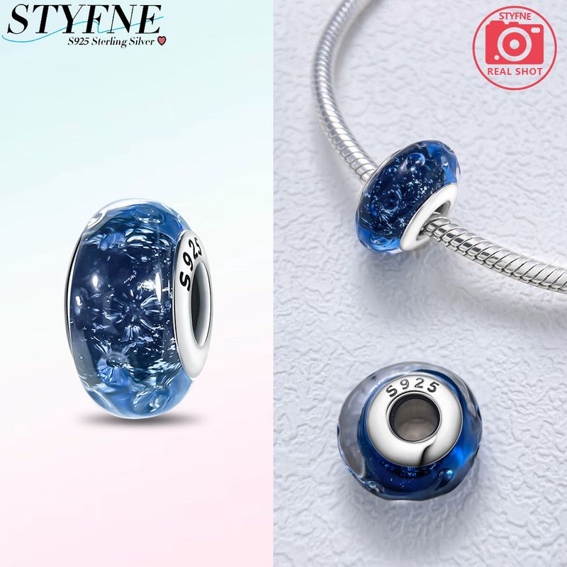 Original Charms Pink Murano Glass Blue Flower Butterfly Beads Fit 925 Silver Bracelet Women Diy Jewelry Gift Accessories