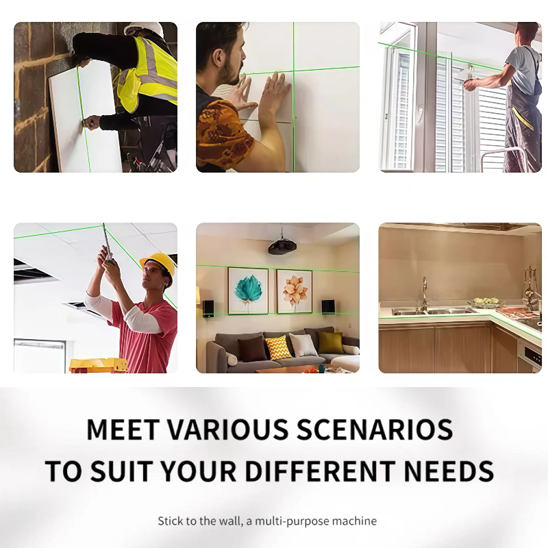 Specifications: Material: High-quality aluminum alloy Design and Style: Ergonomic, lightweight, and durable Performance and Property: 360-degree green laser with 16 lines for precise alignment Parts and Accessories: Includes wall-mount bracket and carrying case Usage and Purpose: Ideal for construction and DIY projects Typical Adaptive Scenario: Versatile for both indoor and outdoor use