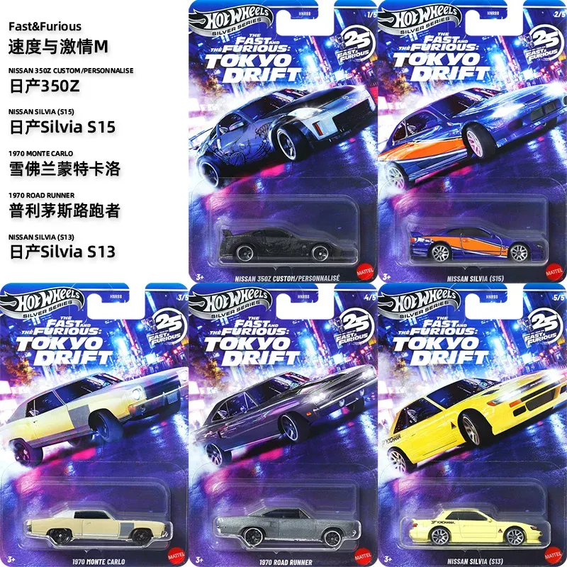 Original Hot Wheels Fast&Furious Car Camaro Chevy Custom Mustang Subaru Nissan 25th Anniversary Auto Model Alloy Boys Toys Gifts
