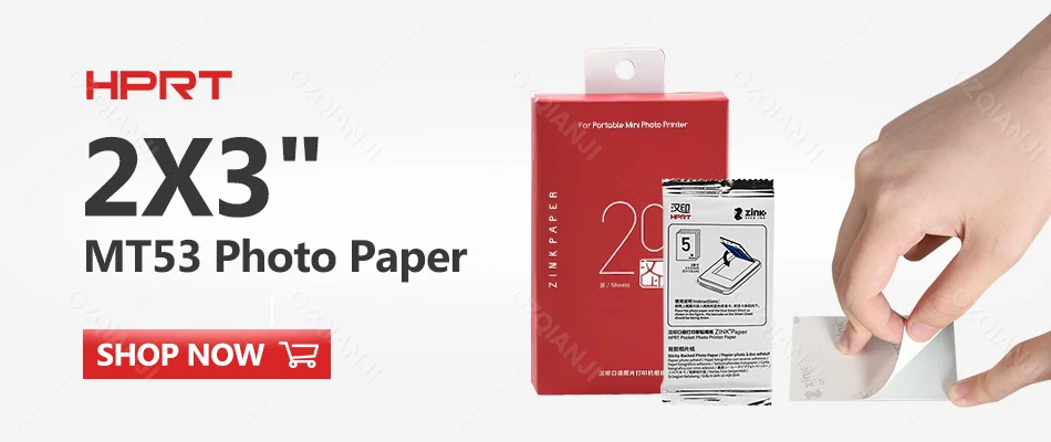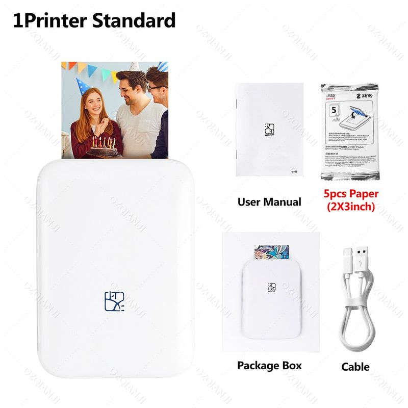 HPRT Portable Photo Printer Pocket Size Wireless Compatible with iOS&Android Phone, Zink Technology,Print 2x3 Sticky-Backed Photos, (with 5 Sheets Photo Papers)