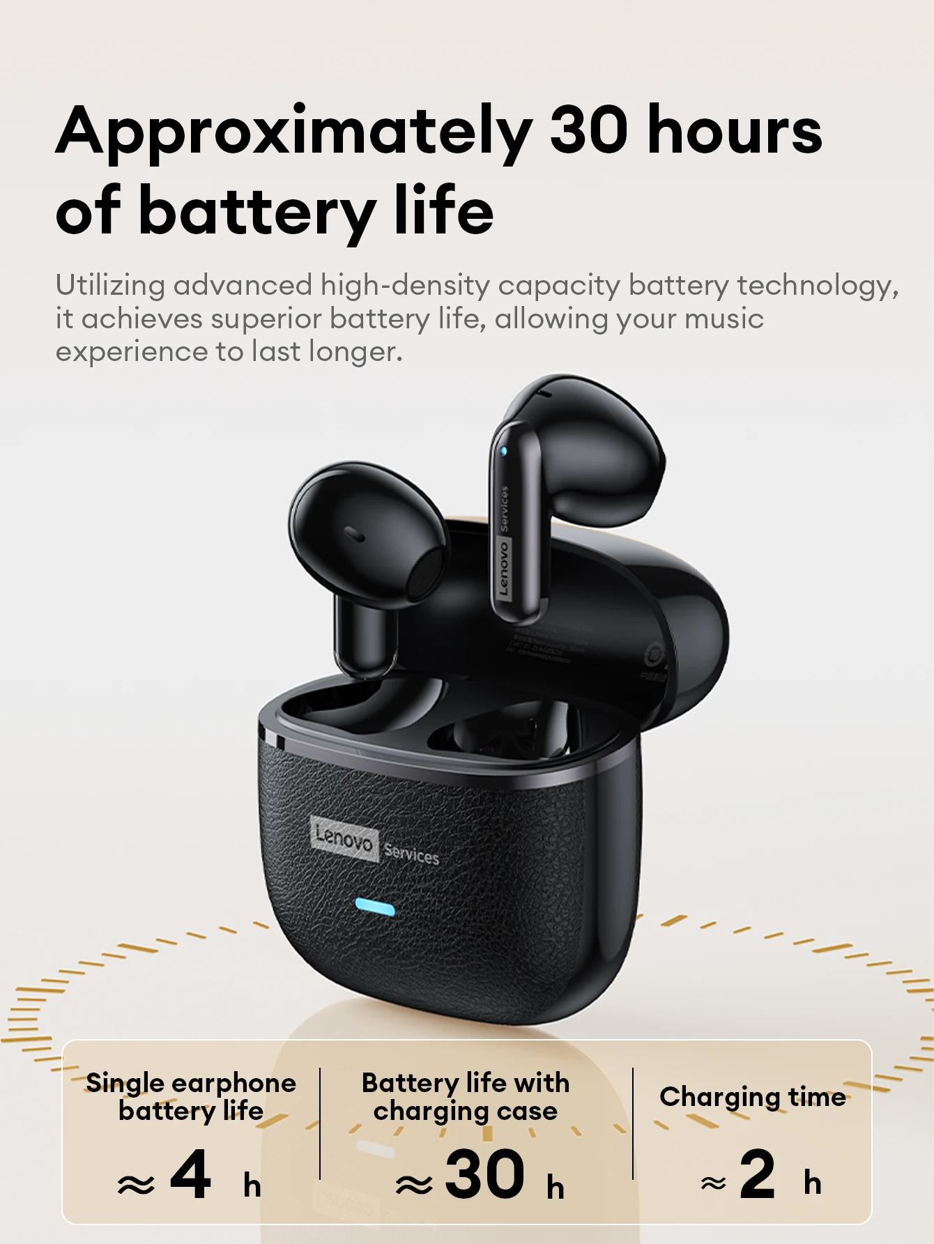 3. [Long-lasting Battery // End to Battery Anxiety] Each earbud delivers approximately 4 hours of playback. Combined with the charging case, total battery life reaches up to 30 hours, meeting all-day usage demands.