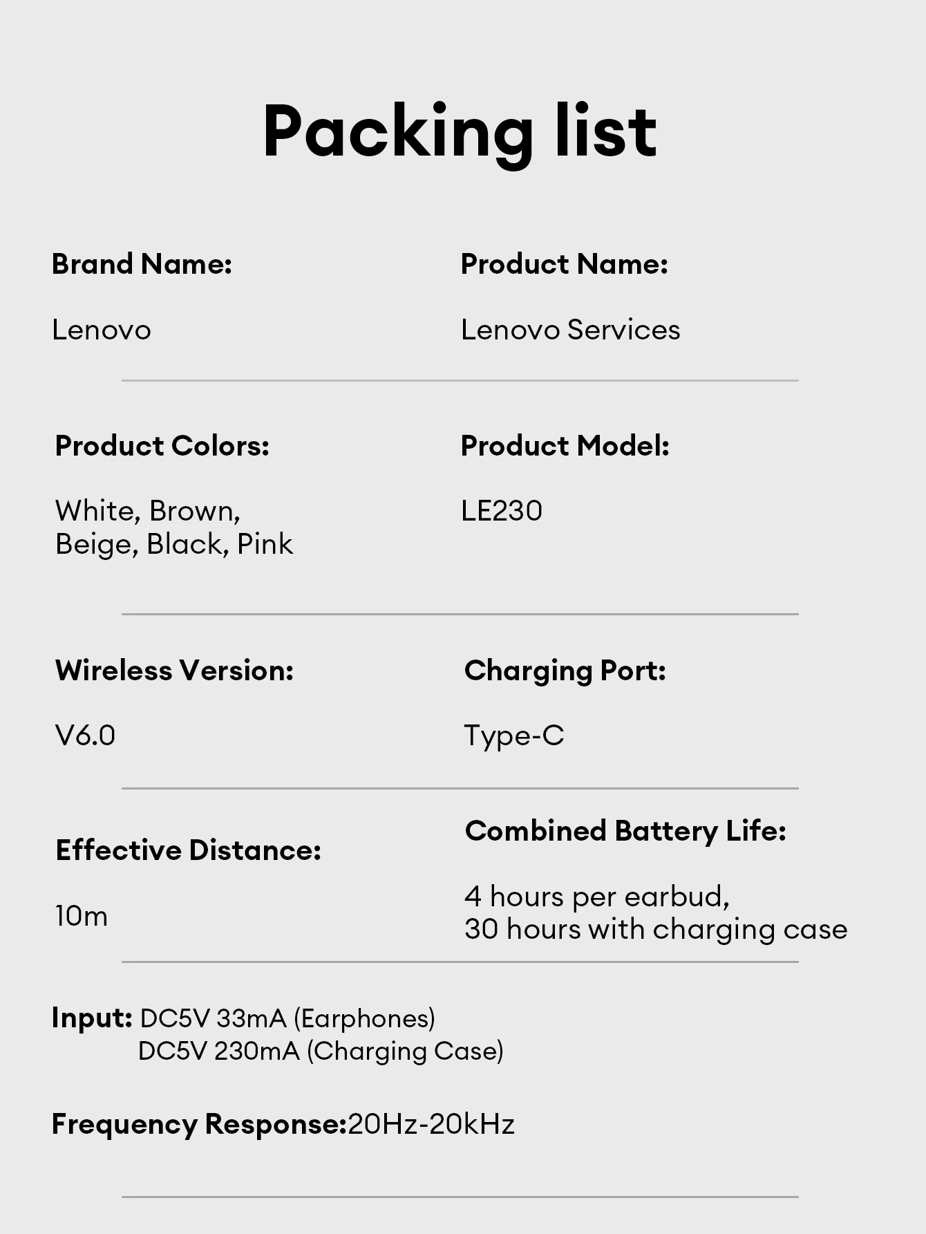 Lenovo LE230 TWS Bluetooth 6.0 Earphones