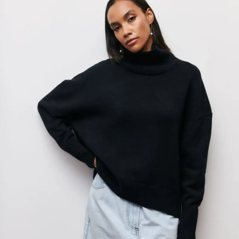 Original Light Luxury O-neck Knit Sweater Autumn and Winter Women's Elegant Loose Mock Neck Solid Color Warm Outerwear Sweater