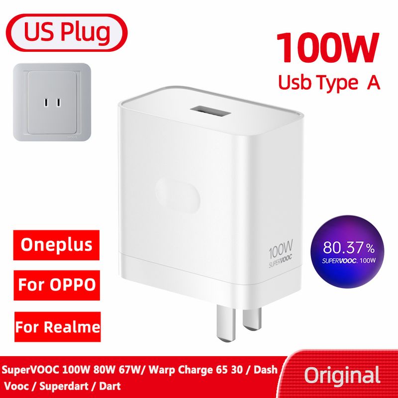 Original Oneplus Charger SuperVOOC 100W Type-A Power Adapter EU 80W Super Fast Type C Cable One Plus 13 12 11 10 Pro Nord CE 3 5