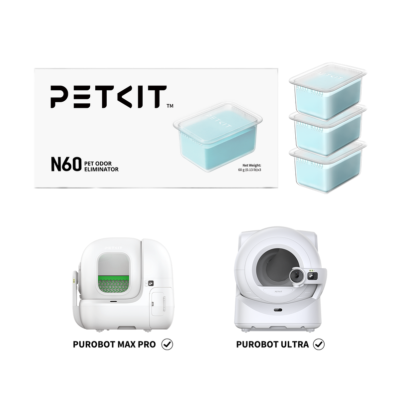Built for long-lasting use and an odor-free waste bin. One piece of N60 odor eliminator provides 45 days purification with the turbo fan diffuser in PUROBOT MAX PRO, while it lasts about 60 days with PUROBOT ULTRA.