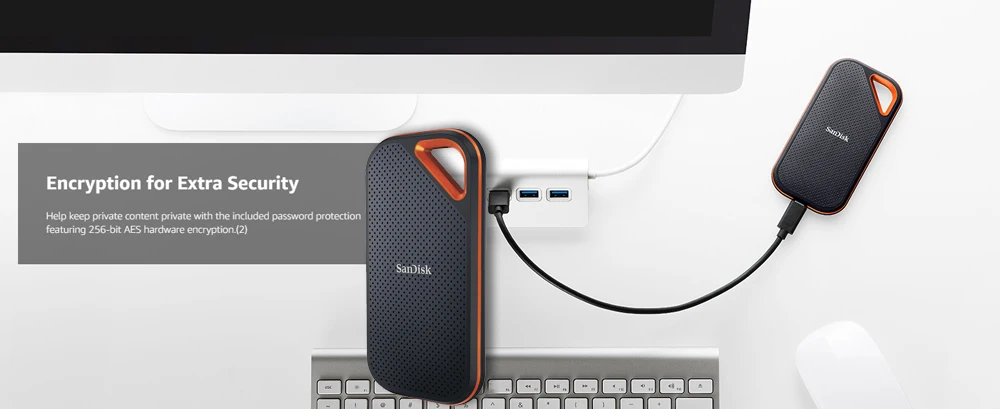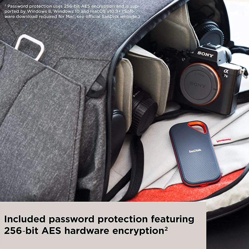 Designed to work with both Windows and Mac, the SanDisk Extreme Portable SSD is equipped with a USB 3.2Gen2 Type-C connector and also includes a USB Type-C to Type-C cable and a Type-C to Type-A adapter, meaning it will work with the PCs and Macs of today tomorrow and yesterday.