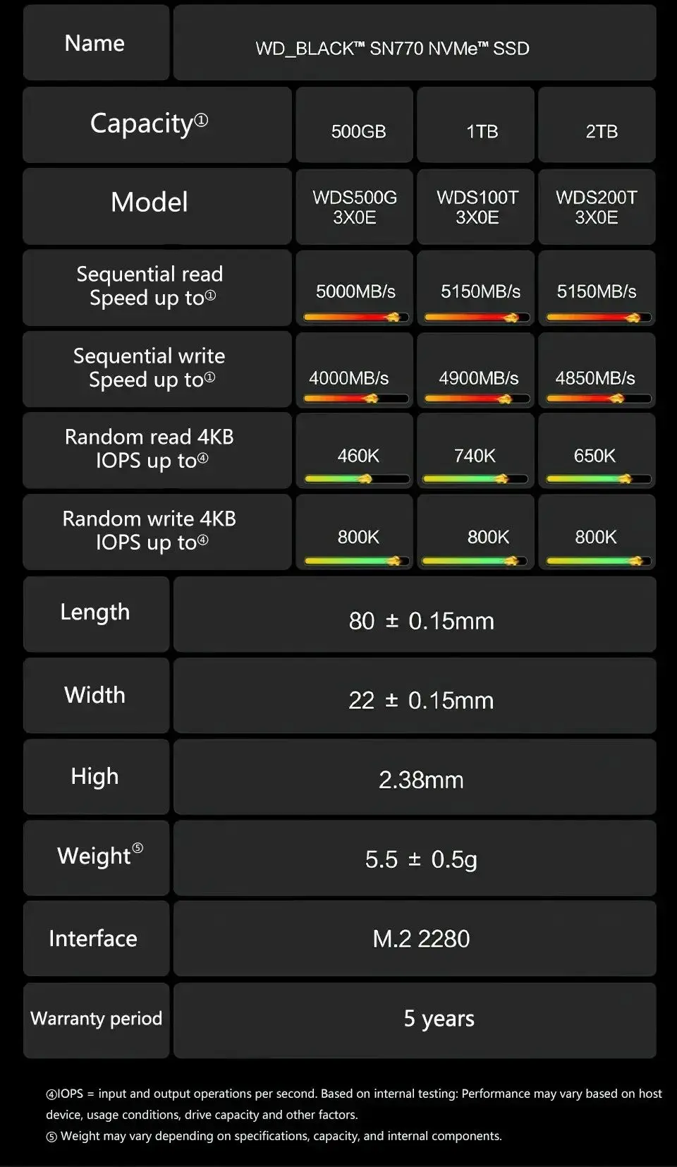 IOPS = input/output operations per second. Based on internal testing; performance may vary depending upon host device, usage conditions, drive capacity, and other factors.
