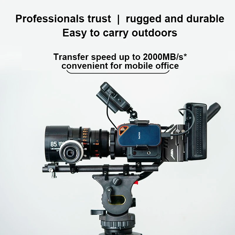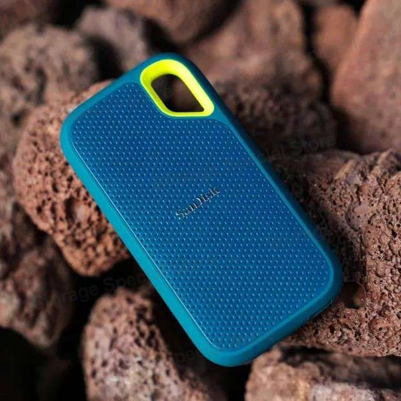 The rugged SanDisk Extreme Portable SSD delivers high-speed storage for saving and editing hi-res photos and videos.