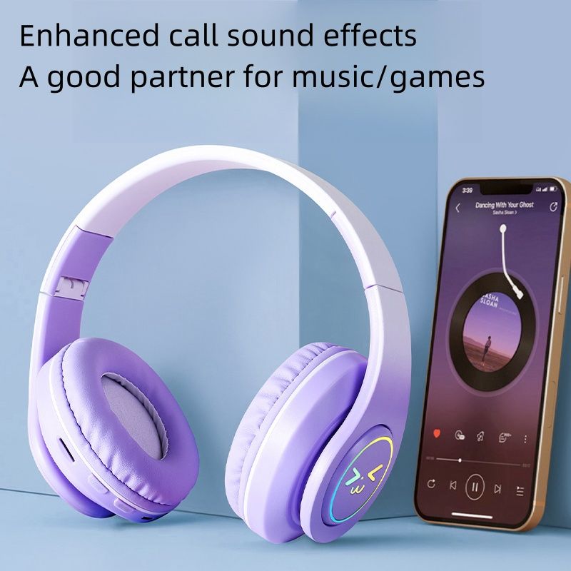 Original Wireless Bluetooth Headphones for Computer RGB Glowing Smiley Face Noise Reduction Gaming Headset Gamer Girl Bass Sport