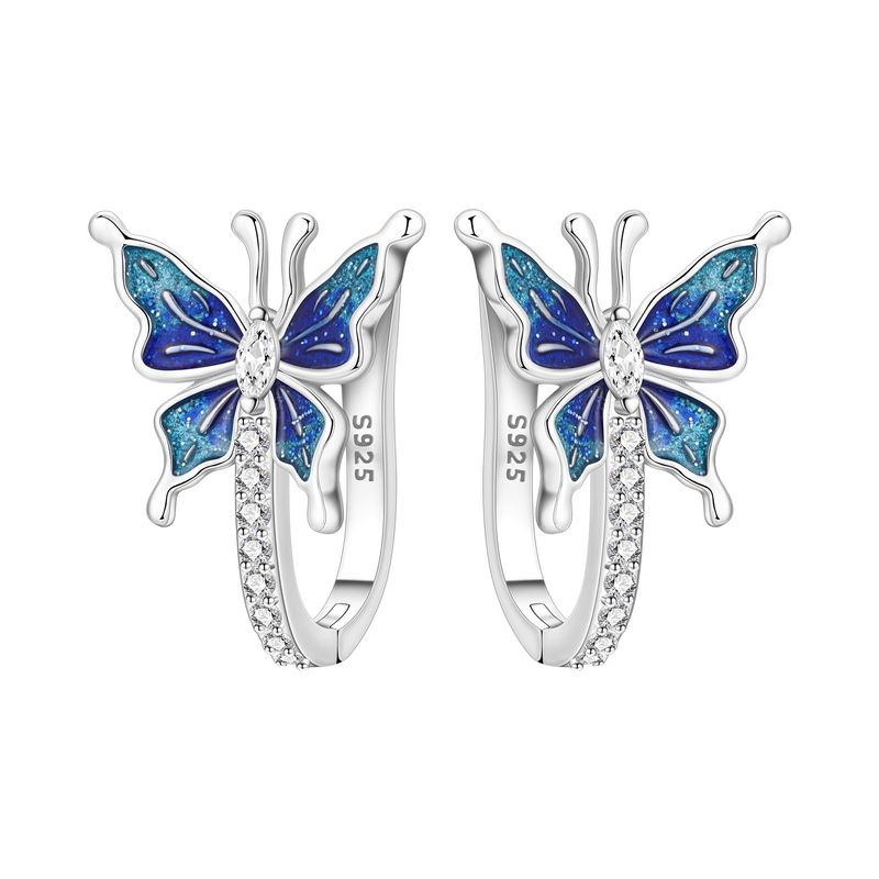 Orstarry Original 925 Sterling Silver Minimally Design Blue Zircon Earrings Women Hoop Earring Anniversary Jewelry Gifts