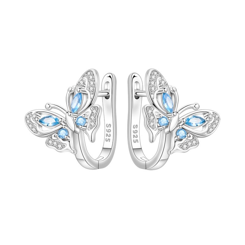 Orstarry Original 925 Sterling Silver Minimally Design Blue Zircon Earrings Women Hoop Earring Anniversary Jewelry Gifts