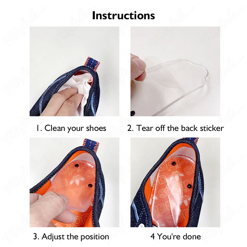 Self-adhesive, can be attached to the shoes, effectively avoiding the insole to slide, not to hurt the shoes after tearing, can be reused after cleaning.