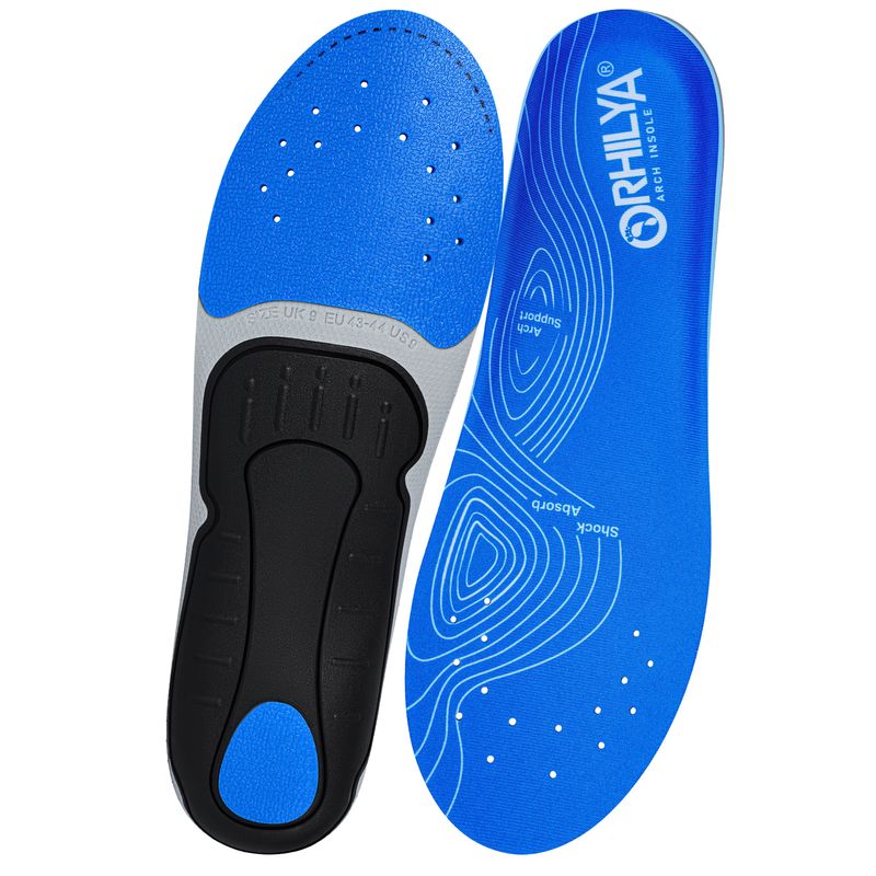 Ideal orthotics for mild to moderate flat feet, pronation, arch discomfort, heel spur, foot pain associated with plantar fasciitis. Shoe insert helps stabilize and support foot, distribute pressure and relieve plantar fasciitis foot pain