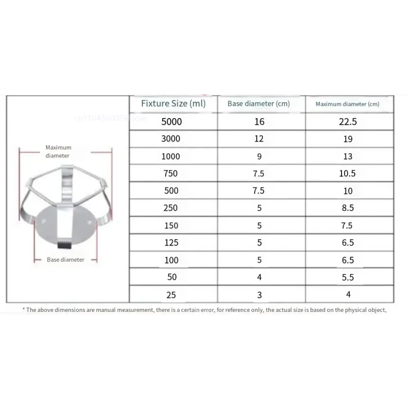 Oscillator and shaker are laboratory instruments with oscillation and emulsification, which can cultivate and prepare biological samples and are suitable for small-scale production. They are indispensable laboratory equipment and small-scale production equipment for scientific research, education, and production departments such as plants, biology, microorganisms, biological products, genetics, viruses, medicine, and environmental protection. Stainless steel fixed fixtures are particularly suitable for the cultivation and preparation of biological samples for various comparative experiments. Manufacturer's direct sales flask fixture, shaker fixture, conical flask stainless steel fixture instructions: All stainless steel fixed fixtures are free of charge for shipping up to 10 pieces. The above prices are exclusive of taxes, and prices for large quantities are negotiable! Professional production of flask fixtures. The existing fixtures for 25ML, 50ML, 100ML, 125ML, 150ML, 250ML, 300ML, 500ML, 750ML, 1000ML, 2000ML, 3000ML, 5000ML, and 6000ML flasks have solved a series of problems that existed in the past when installing and clamping flasks, such as inconvenient installation and loose clamping over time, which have been troubling domestic oscillator and shaker production enterprises. In the rapidly changing field of bioengineering, teachers have put forward increasingly high requirements. We have integrated the opinions of some experts in the field and successfully designed and manufactured various molding molds for bottle cards, as well as a series of product specifications including 25ML.50ML.100ML1.25ML.150ML.200ML2.250ML.300ML.500ML.750ML.1000ML.2000ML.3000ML.5000ML;