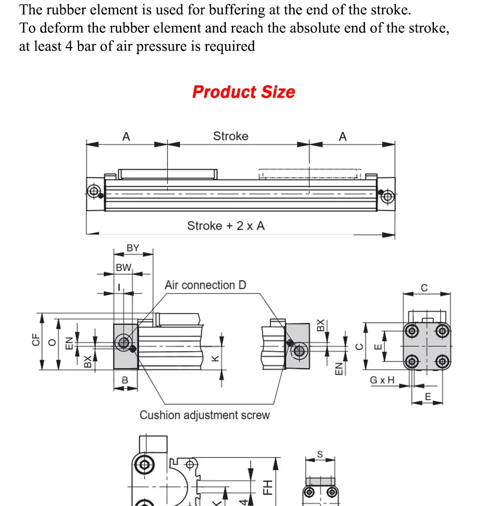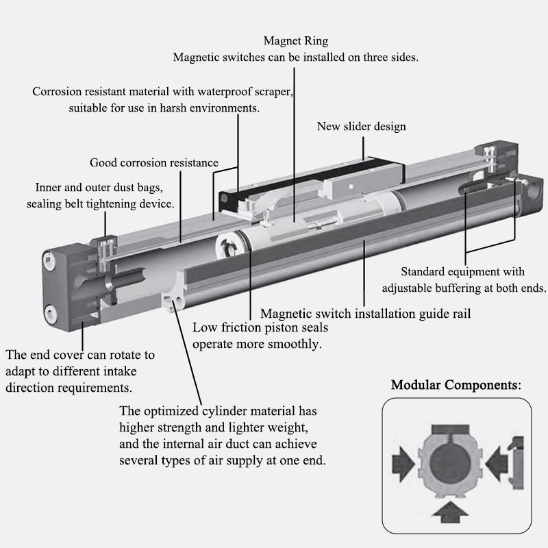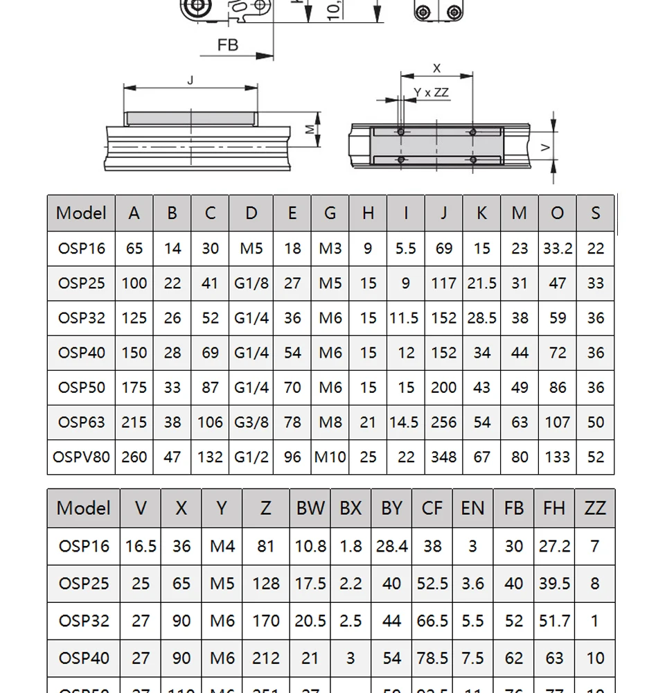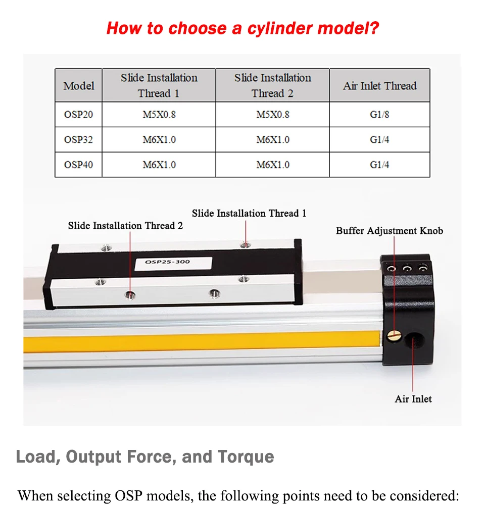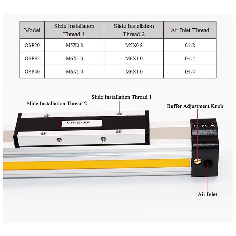 OSP Pneumatic Air Cylinder Bore 25/32/40mm Mechanically Jointed Double Acting Rodless High Thrust OSP-25