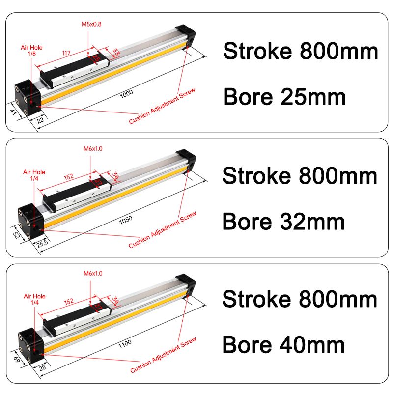 OSP Pneumatic Air Cylinder Bore 25/32/40mm Mechanically Jointed Double Acting Rodless High Thrust OSP-25