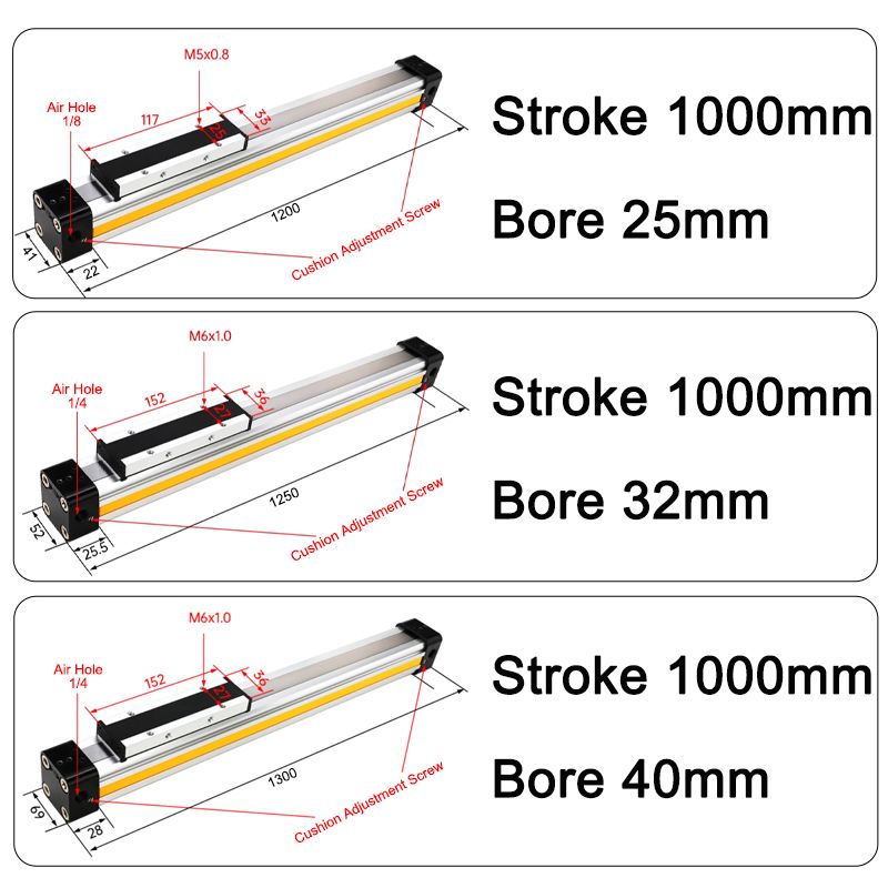 OSP Pneumatic Air Cylinder Bore 25/32/40mm Mechanically Jointed Double Acting Rodless High Thrust OSP-25