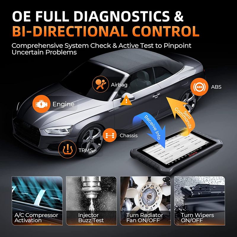 7. Bi-directional Control: For quick problems location, you can widely apply OTOFIX scanner para autos to vehicle doors, windows, sunroof, wipers, headlights, radiator fans, etc.
